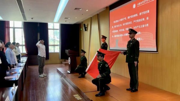 学院党委副书记、副院长夏昱向毕业生党员代表现场赠送了政治生日贺卡。学院党委组织员张凯为毕业生党员开展离校教育,指导毕业生党员组织关系转移以及党员档案转接。毕业生党员代表吉新坤、姚佳欣、宣怡慧、张心仪和黄浚哲围绕党纪学习体会进行了主题发言。全体师生党员面向党旗,重温了入党誓词。