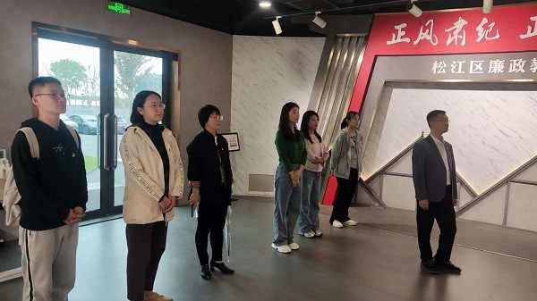 在现场专业讲解员的引导下,支部党员参观了松江区廉政教育馆的四个主题展厅,分别是“以史为鉴、激浊扬清”,“高瞻远瞩、从严治党”,“反腐惩恶、重拳出击”以及“唯实唯干、清风护航”。馆内不仅展示了中国古代监察制度、松江历代清官廉吏事迹,同时也展示了区内典型的腐败案例。展览内容丰富,主题鲜明,引导党员干部在听学思悟中知敬畏、存戒惧、守底线。