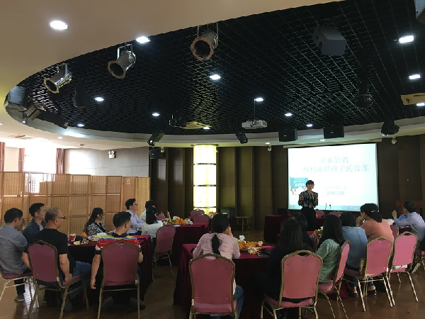 为帮助家长们将正面管教的方法运用到各自养育儿女的实践中,2019年5月29日下午,会计学院工会邀请《东方教育时报》家庭教育专栏撰稿人、美国认证正面管教导师候选、国家二级心理咨询师张少华来校分享交流。活动围绕“正面管教——如何赢得孩子的合作”的主题展开,张少华用体验式教学的方法,帮助大家体会孩子被正面语言引导和负面语言管教时的不同情绪感受,强调了家长们在尊重孩子独立人格的前提下,用心来养育孩子,加强自我学习和提升,在改变孩子之前,先改变自己,成为更好的自己。张少华还解答了老师们在养育孩子过程中面临的困惑,给大家很多启发。