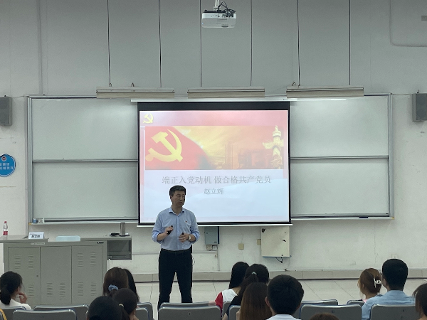 开班仪式上,专职组织员余艺老师对本次培训班的课程内容和培训要求进行了介绍。随后,赵立辉老师以“端正入党动机,做合格共产党员”为主题开展本次培训第一课。赵立辉老师主要对端正入党动机的重要性、如何树立正确的入党动机以及如何以实际行动争取早日加入党组织等方面的内容,引导学生作为积极分子要按照党员的标准严格要求自己,争取早日加入中国共产党。