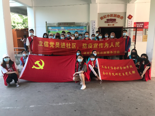 5月15日,研究生党支部全体党员深入世纪新城社区,开展以“立信党员进社区,防疫宣传为人民”为主题的志愿服务活动。