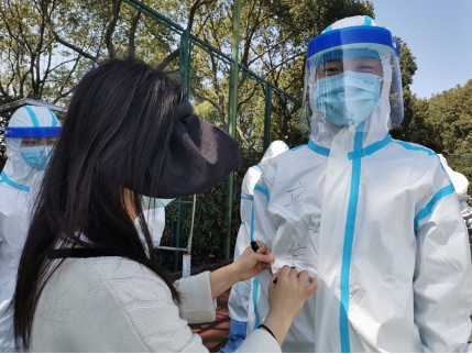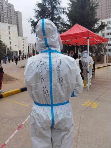 门诗雨,会计学院学生第一党支部预备党员。春暖花开之时,疫情突然袭击了她的家乡--陕西宝鸡。第一时间穿上防护服,协助社区登记核酸人员信息,从开始到结束,一刻不停歇。她说:“虽然辛苦,但在疫情攻坚的关键时刻,义不容辞,相信打败病毒赶走疫情的日子指日可待。”