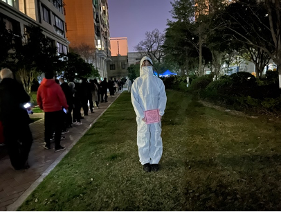 陈虹宇,会计学院入党积极分子,主动报名参与文翔路校区核酸检测志愿者,号召动员在校学院加入志愿者队伍,引导检测队伍,维护场秩序。她说:“作为一名入党积极分子,疫情防控的防护线,我愿意守护;作为一个立信人,我们心连心、手牵手、同呼吸、共命运,相信我们一定能打赢疫情防控这场硬仗!”