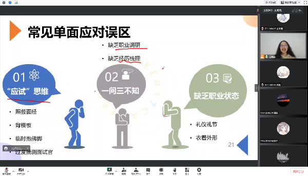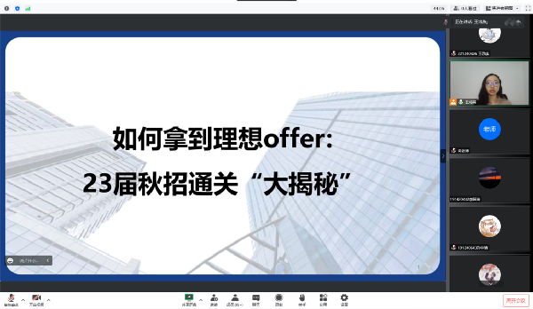 为了进一步提升学生对职业生涯规划的了解,认清当前就业形势,提升就业能力,在求职过程中高效通关,会计学院于11月16日、18日邀请资深职业规划师王鸿燕,依托腾讯会议举办两场就业实战分享活动,本次系列活动是会计学院2023届“求职指导训练营”主要项目之一。