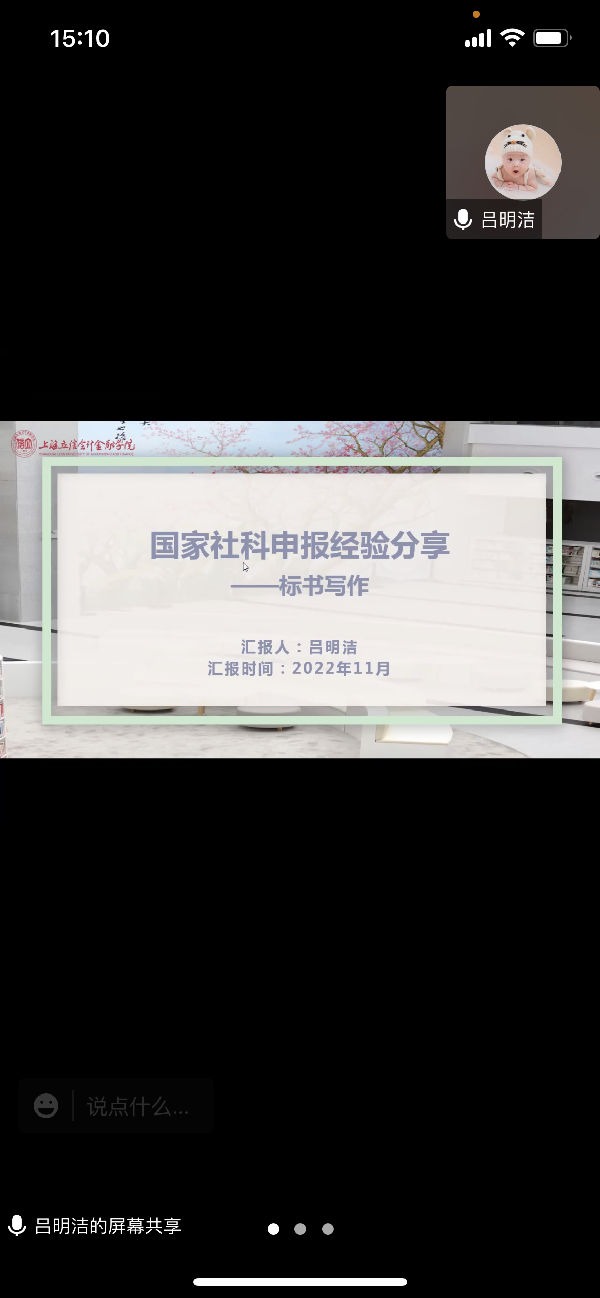 2022年11月30日下午,会计学院在腾讯会议举办了国家社科项目申请经验分享,学院组织往年成功申报国家社科项目的汪猛副教授和吕明洁博士进行分享交流,会议由邵丽丽副院长主持,我院19位专业教师参加。