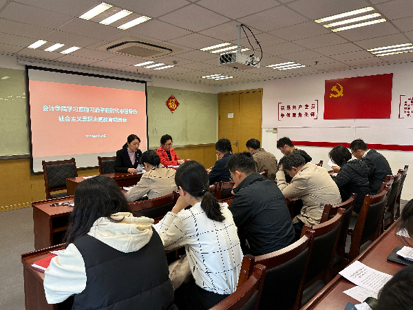 4月24日下午,会计学院党委在文翔路校区序伦大楼806会议室召开学习贯彻习近平新时代中国特色社会主义思想主题教育动员大会。学院领导班子成员、党委委员、党支部书记、支部委员、各系(部)主任、科级干部参加会议。会议由学院党委书记王婧主持。
