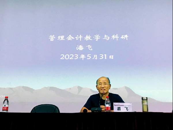 上海财经大学资深教授、博士生导师潘飞为我校师生做了“管理会计教学与科研”的专题学术报告。潘教授从个人经历出发,与在座师生分享自己的求学经历与科研路径,详细地讲解了研究生该如何提高自身科研能力;然后,潘教授介绍了管理会计学科的发展历程,重点介绍了管理会计学科自2014年以来在制度体系、人才队伍、信息化体系建设以及行业应用方面的成果,也围绕理论、方法、技术、实践者四个层面阐述了我国管理会计建设存在的问题。在最后的讨论交流环节,潘教授热情回答了同学们提出的问题,同时总结了三句话与同学们共勉:“人贵有自知之明:自信、寻找差距、只争朝夕”“有所为有所不为:认认真真做好一件事”“培养三大品性:健康的心灵、强健的体魄、愉快的学习工作生活”。