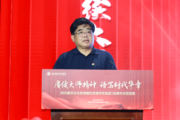 为加强毕业生党员教育,纪念潘序伦先生诞辰130周年,弘扬大师精神,缅怀大师风范,6月7日下午,由会计学院承办的“赓续大师精神 谱写时代华章”2023届毕业生党课暨纪念潘序伦先生诞辰130周年示范党课在文翔路校区昭信堂举办。校党委书记解超,校党委副书记、副院长王军华,党委常委、党委组织部长刘永琴出席。2023届毕业生党员、各二级学院入党积极分子代表1000余人观看了本次毕业生党课。