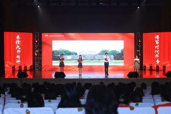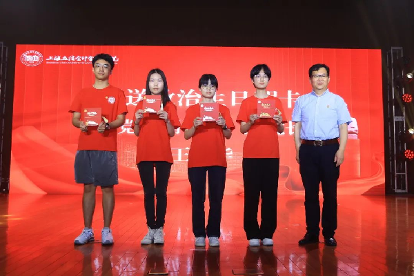 王军华为毕业生党员代表颁发了政治生日贺卡。毕业生党课由文翔路校区的师生们共同演绎,共分为“弘扬立信精神,赓续百年初心”“奋进伟大征程,谱写时代华章”“勇担光荣使命,汇聚磅礴力量”三个篇章。