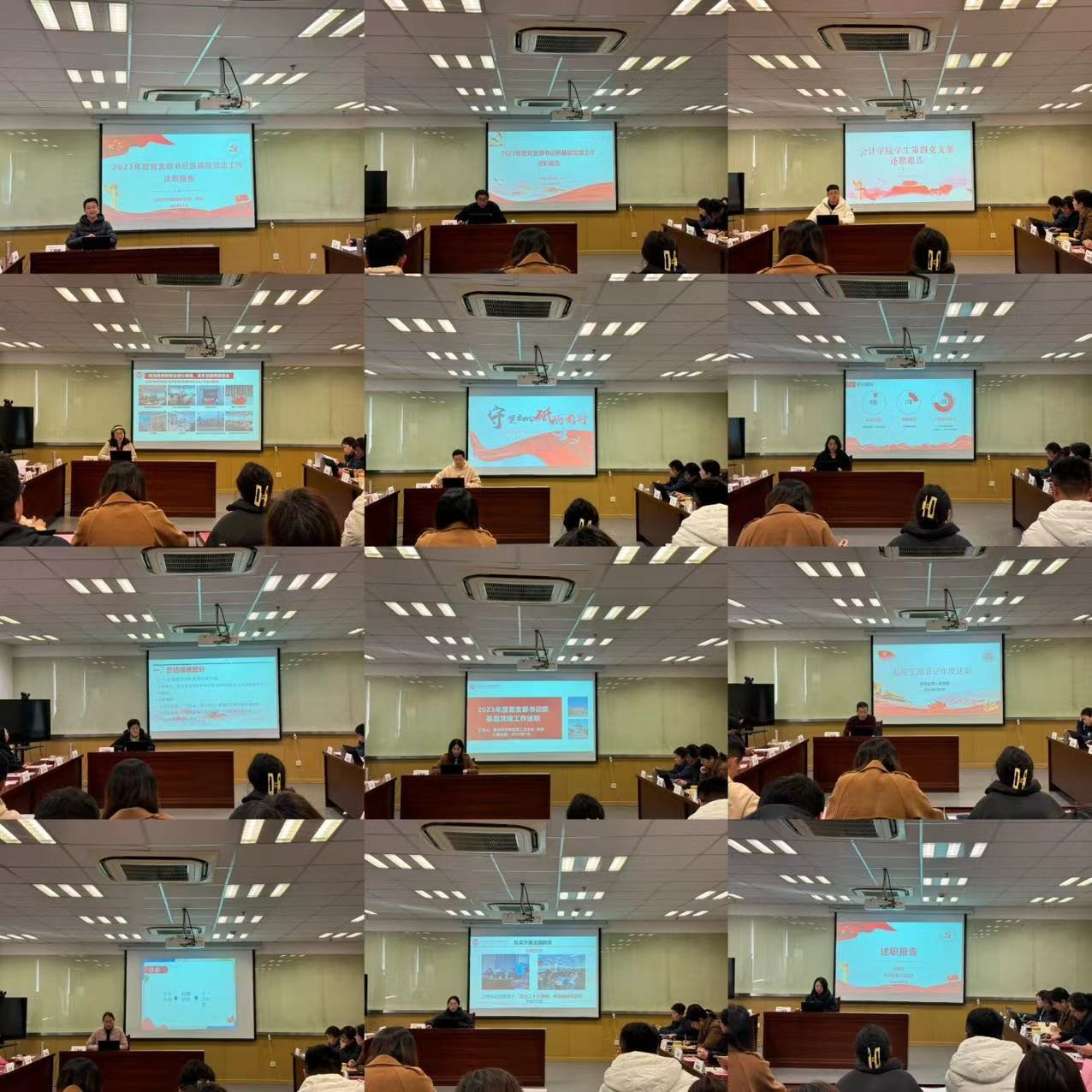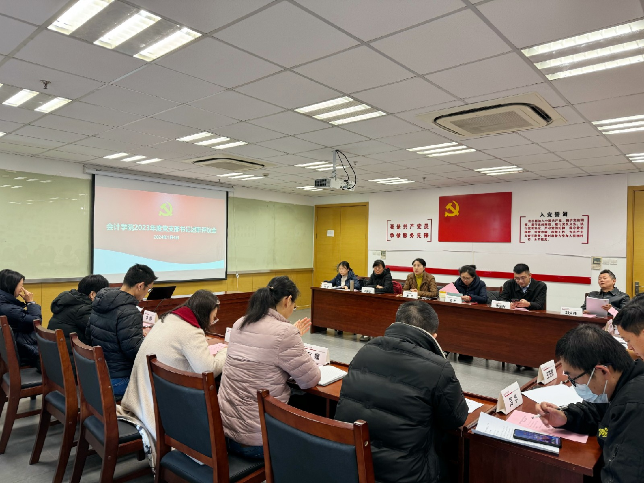 1月4日下午,会计学院召开2023年度党支部书记述职评议会。学院党委委员、组织员、党支部书记及党员代表参加,会议由党委书记王婧主持。