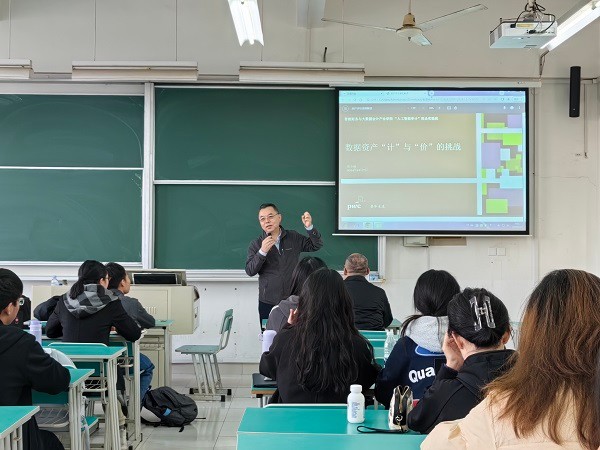 12月7日,普华永道(PwC)中国资深合伙人陈少瑜老师为会计学院“人工智能审计”校企实验班讲授主题为“数据资产‘计’与‘价’的挑战”的专题课程。陈少瑜老师作为中国企业评估与咨询领域的资深专家,结合最新政策与行业实践,为同学们深入剖析了数据资产“入表”的难题、实践中的误区、理论上的挑战以及会计准则的最新进展。