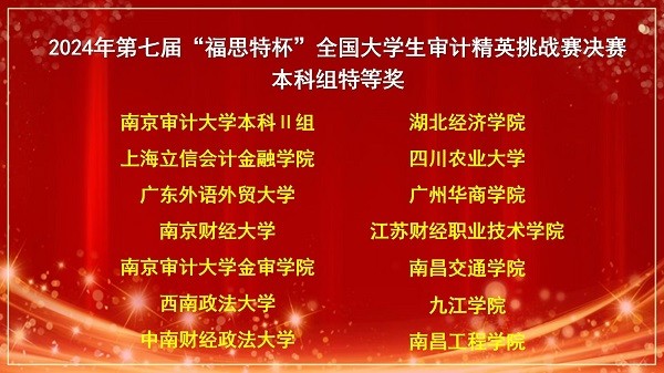 该赛事自2018年创办,由中国审计学会教育分会主办、教育部审计学课程群虚拟教研室与南京审计大学政府审计学院承办,是目前国内规模最大、赛道最全、参赛选手最多、规格最高的审计学科赛事。本届大赛设置预赛、复赛和决赛三个赛程。本科组进入复赛的队伍共有270支、参赛人数1080人。其中72支队伍晋级决赛,72支决赛队伍中前20%获特等奖。