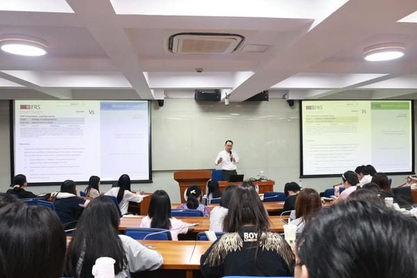 刘浩教授聚焦“AI+ESG时代的会计准则制定挑战”,解析了云计算服务资产认定、敏捷软件开发费用核算等前沿议题,结合小米上市财务案例,阐释创新企业融资模式对传统准则的突破,引导学生关注准则动态,将ESG审计、金融工具审计等新兴领域纳入研究视野。