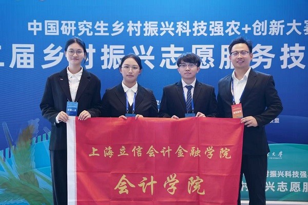 本次大赛中,我校审计硕士团队以“红色账本”作品,将红色会计精神与当代乡村需求紧密结合,在国家级平台上探索了乡村振兴志愿服务的创新路径。这充分彰显了会计学院“专业服务社会”的育人初心与“以赛促学”的显著成效,也反映出上海高校研究生服务长三角的使命意识和责任担当。展望未来,会计学院将持续推动校地合作,引导更多研究生扎根基层、服务区域,让以“立信”为魂的红色会计精神在长三角乃至更广阔的乡村沃土中生根发芽、贡献价值。