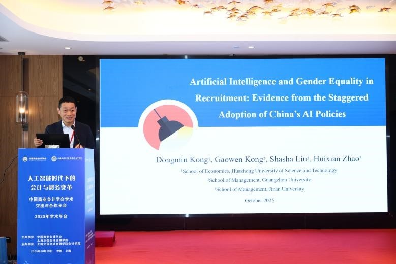 华中科技大学经济学院副院长孔东民教授分享了题为“Artificial Intelligence and Gender Equality in Recruitment”的研究,发现AI产业的蓬勃发展推动人才需求结构重构,女性友好型岗位显著增加,有效打破了传统就业市场的性别歧视壁垒,为女性就业赋能增效。这一研究不仅揭示了AI技术的社会价值,更拓展了财会领域跨学科研究的边界,为探讨技术进步与社会公平的协同发展提供了实证参考。