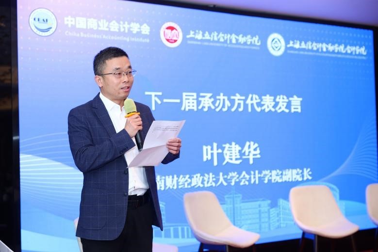 下届年会承办方代表,河南财经政法大学会计学院叶建华教授进行了表态发言。他对上海立信会计金融学院的精心组织表示感谢,他表示本届年会内容丰富,切实让参会者学有所获、交流有所得。衷心期待各位同仁下次相聚河南财经政法大学,共话会计学科发展新未来。