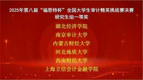 本次参赛队伍由李率锋、高前善、魏晓雁三位硕士生导师指导,他们在赛前准备、专业辅导及现场应对等方面给予了学生悉心帮助和坚实支持。研究生队伍的获奖充分体现了我院审计硕士在课程体系建设、应用型人才培养以及创新能力训练方面的显著成效,必将激发研究生在审计学科领域深化学习、勇于探索的热情。下一步,我院将继续推进专业教学改革,拓展实践平台,努力培养更多具有专业能力、创新精神和实务素养的高水平审计人才。