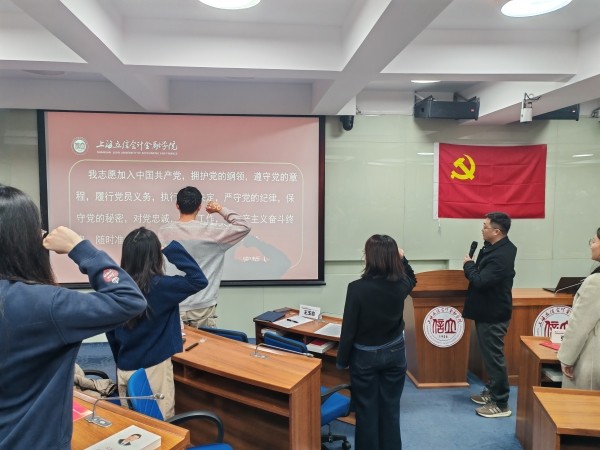 为增强新党员的党性修养与责任意识,激励青年党员勇担重任,2025年12月22日,会计学院在文翔路校区序伦大楼教师发展中心举行2025年下半年新党员入党宣誓仪式。会计学院党委书记谢何融,党委副书记、副院长杨晓丽,组织员张凯,学生党支部书记以及新发展党员参加。伴随着激昂雄壮的《国际歌》旋律,本次入党宣誓仪式正式拉开序幕。