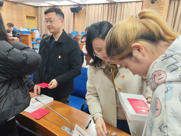 学院党委精心为新党员们定制了《党员成长手册》,并赠送《党章》和《习近平谈治国理政》第五卷,引导新党员们强化理论学习和实践担当,为他们的入党时刻增添了光荣而严肃的仪式感。