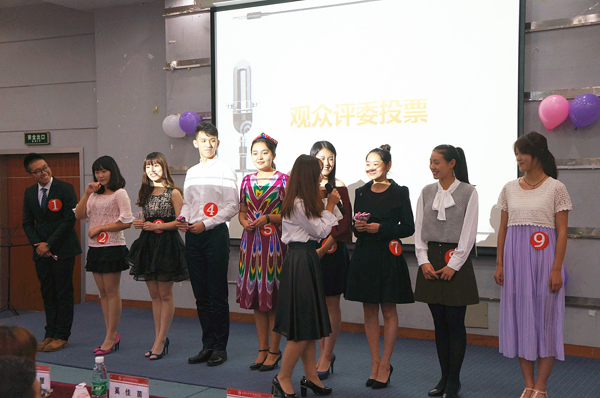 本次比赛分为自我介绍、才艺展示、模拟主持以及随机应变四个环节。通过层层角逐脱颖而出的九位选手以自己独特的方式进行了自我介绍和才艺展示,大赛渐渐进入热况。模拟主持中,选手们分别进行了七夕、中秋、春节联欢晚会及电台场景的模拟,为我们充分展示了他们自身的能力。随机应变环节中,每位选手用他们敏捷的思维,对不同的突发状况进行救场。最终,何欣岳同学以优异的表现夺取了一等奖,朱延钰和王明轮同学荣获了二等奖,三等奖由顾剑菁,扎衣热扎克和邹耿同学获得。此外,姚芝怡同学获得了最佳人气奖,吴语诗和李旭同学获得了最具潜力奖。