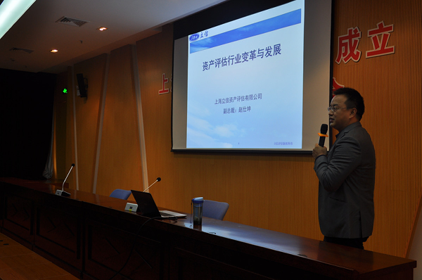 颁奖仪式前,上海立信资产评估有限公司副总裁赵仕坤先生为资产评估专业学生做了《资产评估行业变革与发展》专业讲座。系统介绍了2016年通过的《评估法》及相关政策对行业的影响。并从财税体制改革、资本市场改革、国有企业改革、市场经济完善等方面分别介绍了行业前沿问题,重点介绍了PPP咨询相关项目的市场现状和发展前景。最后,针对资产评估专业学生关注的热点,讲解如何进行学业规划与职业规划。