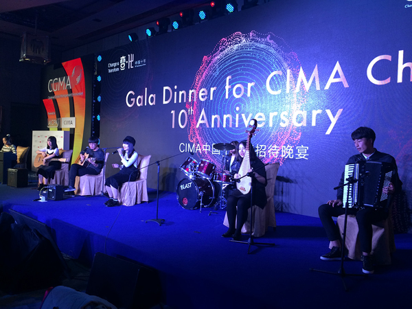 在CIMA中国十周年特别招待晚宴上,我校2014级CIMA班的学生们奉上了特别节目《贝加尔湖畔》,中西乐器演奏配合男女声重唱,将在场观众带入了贝加尔湖的美妙世界中,演奏结束后现场掌声雷动,经久不息。