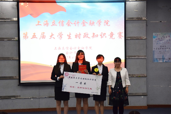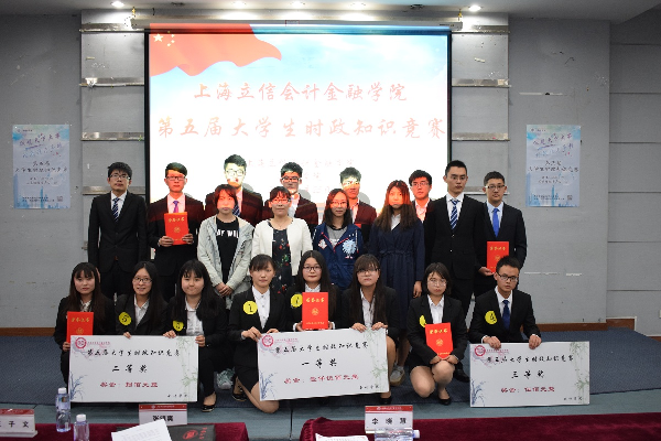 4月25日下午,上海立信会计金融学院第五届大学生时政知识竞赛决赛在长乐楼报告厅举行。经过激烈角逐,共有6支队伍从初赛的400多支队伍中脱颖而出进入决赛。比赛分为“志在必得”、“百里挑一”、“抢滩登陆”、“你说我猜”等环节,同时还穿插了选手们的风采展示与有奖竞答,现场气氛十分活跃。选手们在答题环节中的临场应变能力、答对时观众的热烈掌声,更是将比赛推向高潮。最终,会计学院16级财务管理专业的“老百姓都队”团队夺得冠军,同时获得最佳才艺展示奖。