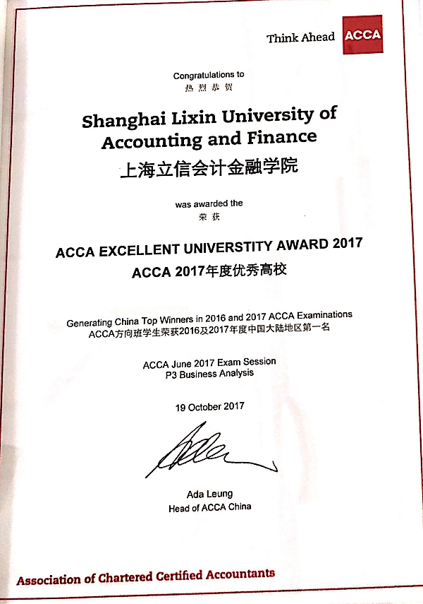 在2016年9月与2017年6月两个考季中,我校ACCA方向班同学共获得两项ACCA全球统考中国大陆单科第一,其中《P2公司报告》获得全球单科第三名的好成绩。
