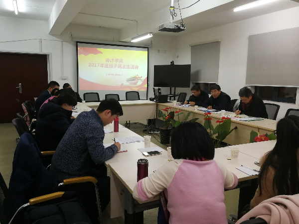 根据立信会计金融【2018】4号文件统一部署和要求,会计学院高度重视,班子成员紧扣主题、抓住重点、联系实际,为本次民主生活会召开做了大量前期准备工作:以个人自学和集体学习相结合的方式认真学习党的十九大会议精神和相关文件;坚持发扬民主、开门纳谏,召开了党外教师代表座谈会、青年教师代表座谈会、辅导员代表座谈会、学生代表座谈会;并通过学院网页、微信通知群公示告之广大师生填写《征求意见表》,广泛征求意见;班子之间、班子与教工间深入开展谈话谈心;认真撰写对照检查材料和发言提纲;自我批评敢于自我剖析,相互批评做到坦诚相见;落实整改责任,确保整改实效。每个环节的扎实开展,为开好专题民主生活会奠定了良好基础。
