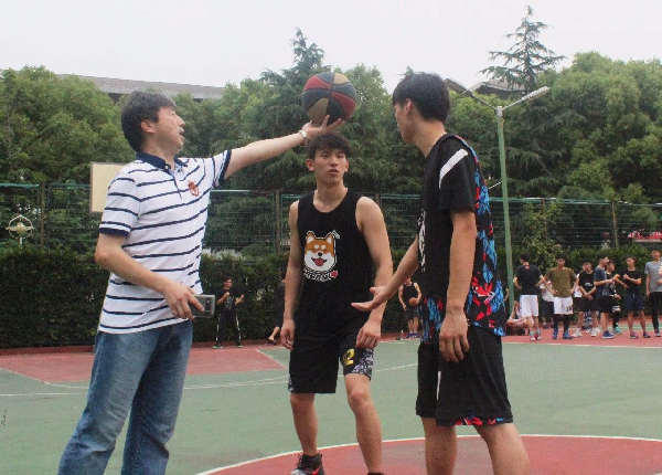 5月30日,阳光体育大联赛学生3V3篮球赛分别在松江、浦东校区同时拉开帷幕。本次比赛共有来自9个学院18支队伍参加,分为初赛和决赛两轮。会计学院党委书记赵立辉、体育教学部副院长陈芝峂出席了开幕式。赵立辉为比赛致辞,裁判团代表对比赛的公平公正作庄严宣誓,赵立辉、陈芝峂为比赛开球。