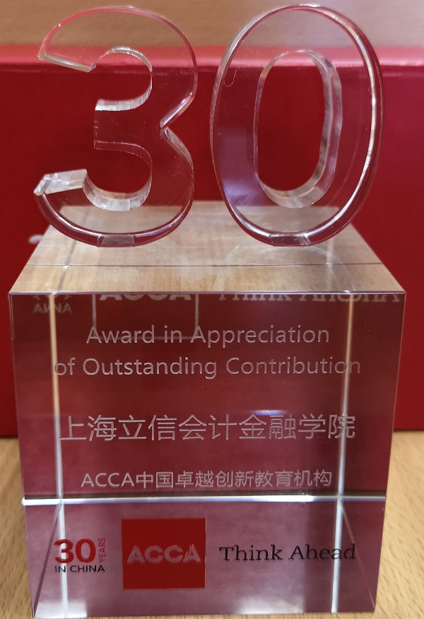 6月22日,ACCA(特许公认会计师公会)全球高峰论坛在北京圆满落幕。为表彰中国合作院校对ACCA发展做出的卓越贡献,ACCA举行了颁奖典礼,上海立信会计金融学院荣获“ACCA中国卓越创新教育机构奖”。ACCA全球会长Leo Lee先生和ACCA行政总裁Helen Brand女士共同为上海立信会计金融学院颁发了奖杯,会计学院副院长林振兴作为代表领奖。