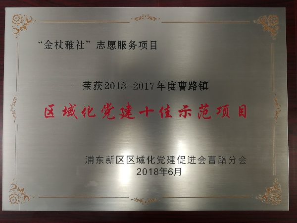 在本次大会上,曹路镇对2013-2017年区域化党建优秀项目等进行了表彰,会计学院“金杖雅社”项目荣获2013-2017年度曹路镇区域化党建十佳示范项目。