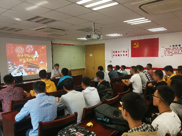 学院党委书记赵立辉老师代表学院对所有为国家、学校做出贡献的退伍学生表示热烈的欢迎和诚挚的敬意,也对他们提出希望和要求。他说:从学生个人角度来说,希望他们能够继续保持好在部队养成的良好作风和习惯,并运用到工作、生活中去;从学院的角度来讲,希望他们能够将这些从部队学到的集体观念、纪律观念等优良作风发扬光大,能够在我院的院风建设上出一把力。他指出:退伍学生是一个特殊的群体,是会计学院的财富,是会计学院发展、进步的重要力量。会上学生与书记亲切交流,学院认真听取了学生们提出的各项问题和困难,并指派专人做好记录并协调解决,同时要求辅导员关心并协助退伍学生尽快重新融入校园生活,做好军队退役学生接收工作。