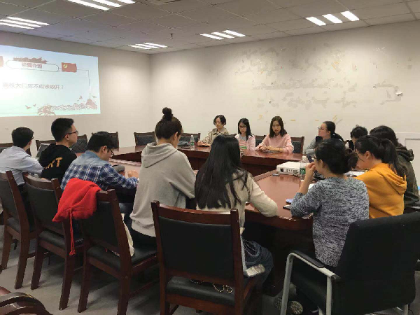 2018年10月19日下午,16级学生联合党支部在松江校区序伦楼914会议室举行了本学期第一次“博·约”双周五论坛,支部全体成员参加了活动,活动由党支部书记栾萌萌老师主持。