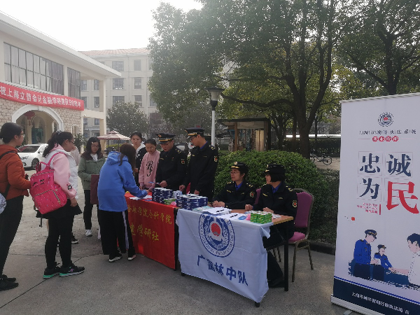 又讯,当天中午,广富林街道城管中队与党史党建学研社成员在学子餐厅门口共同举办了“法制宣传进校园·普法意识入人心”活动。