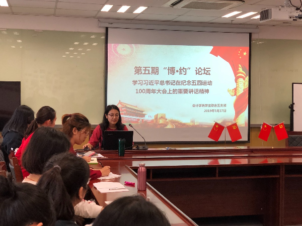 5月17日下午,会计学院学生联合五支部在序伦大楼806开展了毕业生党员离校教育暨第五期“博·约”论坛。本次活动旨在学习习近平总书记在纪念五四运动100周年大会上的重要讲话精神,提高学生党员的政治意识、大局意识、核心意识、看齐意识。全体在校生党员、毕业班党员代表参加了本次活动。