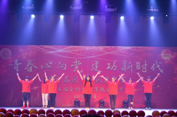 为隆重纪念五四运动100周年、新中国成立70周年,5月22日晚,会计学院在松江校区昭信堂举办“青春心向党 建功新时代”第七届团支部风采大赛决赛。会计学院党委副书记、副院长夏昱莅临现场并致辞。会计学院团委书记张凯、团委副书记栾萌萌以及辅导员侯妙雯担任本次比赛的评委,2017级和2018级辅导员出席了本次活动,会计学院大一大二学生观看了本次比赛。
