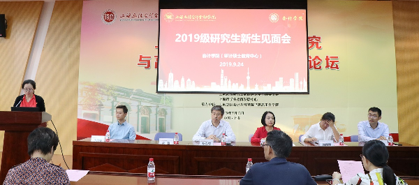 2019年9月24日,会计学院2019级新生见面会在松江校区行政楼二楼报告厅顺利举行。学院党政领导、校内外导师代表、审硕教育中心行政管理人员以及2019级全体研究生出席本次活动。会议由副书记、副院长夏昱主持。