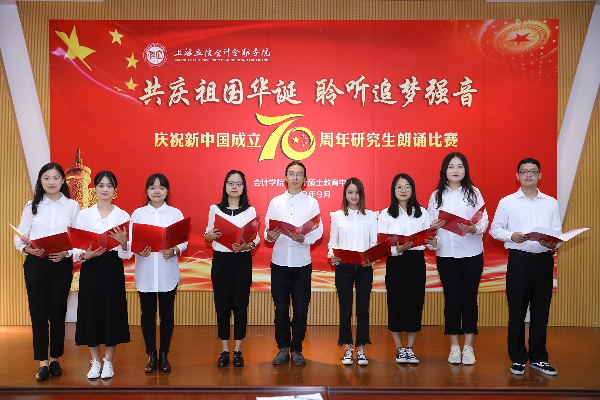 为庆祝新中国成立70周年,抒发青年学生的爱国情怀。9月25日,学院在松江校区行政楼报告厅举办了主题为“共庆祖国华诞,聆听追梦强音”研究生朗诵比赛。活动旨在弘扬爱国主义精神,通过朗诵比赛歌颂新中国成立70年来所取得的巨大成就,抒发我校研究生们对祖国的挚爱之情,展现立信人新时代风貌。