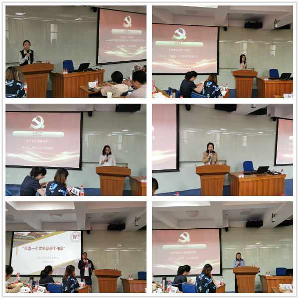 会计学院余艺、张凯、王凤仙,工商管理学院兰丽丽,财税与公共管理学院孙黎黎,外国语学院张文鹏六位老师分别做主题发言报告, 并由工商管理学院党总支书记李卫东、财税与公共管理学院党总支书记闫锐、外语学院党总支书记顾德华分别进行了点评。