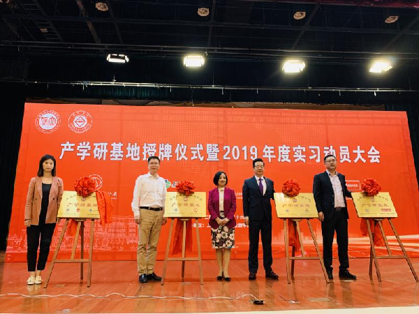 第二项议程,由会计学院院长邵军为上海市嘉定区审计局产学研基地、上海电气集团企业服务有限公司产学研基地、安永华明会计师事务所(特殊普通合伙)上海分所产学研基地、北京外企德科人力资源服务上海有限公司授牌。