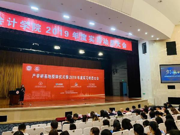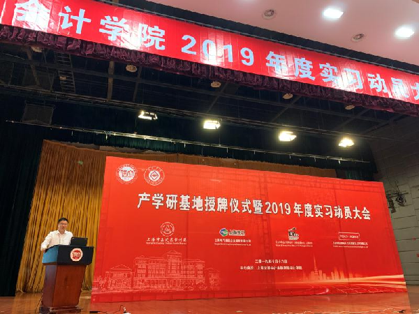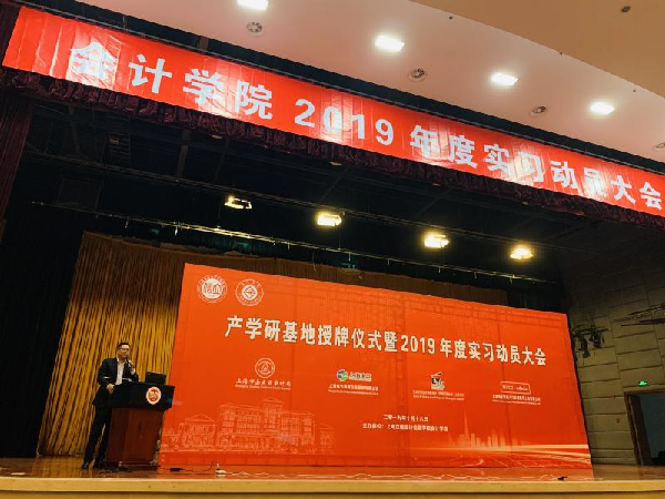 10月16日,会计学院在昭信堂召开了“产学研基地授牌仪式暨2019年度实习动员大会”,产学研基地嘉宾、学院领导、2016级以及2017级学生出席参加。会计学院院长邵军、副院长林振兴、上海市嘉定区审计局局长陆俊敏、综合法规科(审理科)科长张伟康,上海电气集团企业服务有限公司财务共享中心副总监徐丹、人力资源部副部长华炜彦,安永华明会计师事务所(特殊普通合伙)上海分所合伙人、华中地区审计部副主管、大中华区生命科学行业联席主管费凡、大中华区校园招聘主管王峰、校园招聘专员周玙昕,旭辉控股(集团)有限公司校园招聘负责人刘洋、人力资源部HRBP张愿、招聘运营高级专员杨琦星、税务高级经理危骁,北京外企德科人力资源服务上海有限公司财务外包中心总监梅建林出席大会并进行发言。