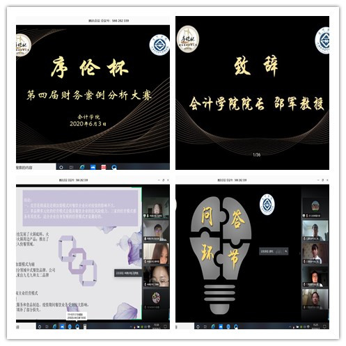 2020年6月3日下午,“序伦杯”第四届财务案例分析大赛决赛依托腾讯会议网络平台顺利举办。担任本次大赛的评委有会计学院院长邵军、会计学院教师万华林、张奇峰、巩娜和魏晓雁。会计学院党委副书记副院长夏昱、会计学院副院长邵丽丽、会计学院团委书记张凯以及会计学院的老师同学们莅临观赛。