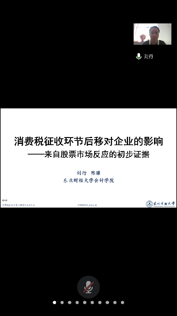 2020年9月16日下午会计学院在腾讯会议平台举办题为“消费税征收环节后移对企业的影响:来自股票市场的证据”学术讲座,讲座由教育部青年长江学者、东北财经大学会计学院刘行教授主讲,李真教授、万华林教授、张奇峰教授等20多位专任教师和20多位学生参加。在一个半小时的讲座中,刘教授分享他最近的研究成果,文章采用事件研究方法,通过观察股票市场对国发〔2019〕21号文的反应,考察了消费税征收环节后移对企业可能产生的影响。结果显示,相比未缴纳消费税的企业,缴纳消费税的企业在[-1,1]事件窗口期的股票市值下降了约0.8%。这与消费税征收环节后移会提高消费税税基,降低消费者需求,从而负面影响企业业绩的理论预期一致。进一步,消费税征收环节后移对企业的影响存在异质性:那些产品需求价格弹性较大、采用从价定率和复合计税方法的企业受影响的程度较大;需求价格弹性较小、采用从量定额计税方法的企业则未受到显著影响。此外,文章还识别了消费税征收环节后移之后潜在的消费税纳税义务人,发现这些企业的股票市值也呈现显著下降。文章结论为中国的消费税改革提供了参考,也拓展了消费税的相关学术研究。