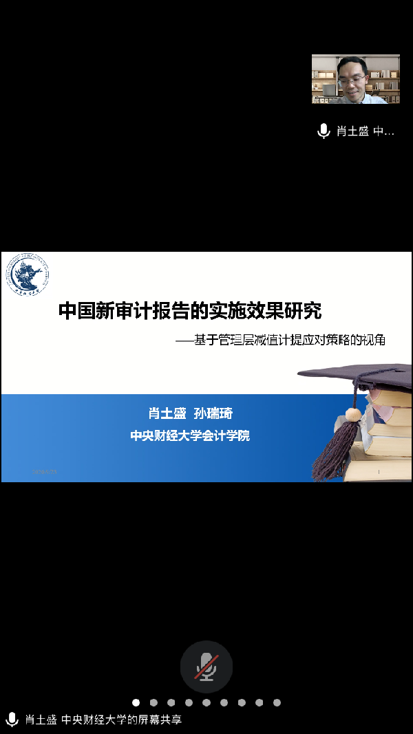 2020年9月23日下午会计学院在腾讯会议平台举办题为“中国新审计报告的实施效果研究——基于管理层减值计提应对策略的视角”学术讲座,讲座由中央财经大学会计学院副教授,中央财经大学“龙马学者”青年学者、康奈尔大学访问学者肖土盛主讲,李真教授、万华林教授、张奇峰教授等20位专任教师和10多位学生参加。在一个半小时的讲座中,肖教授分享他最近的研究成果。中国于2017年1月1日起开始逐步实施新审计报告,但是关于新审计报告实施效果的实证研究并未得出一致结论。新的审计准则要求在审计报告中披露关键审计事项,本文利用此研究背景,采用双重差分的研究设计考察了新审计报告中减值类关键审计事项对管理层减值计提应对策略的影响,以期验证我国新审计报告的实施效果。实证研究发现,当审计师在审计报告的关键审计事项中提及减值事项时,管理层当期将计提更高比例的资产减值准备。进一步研究发现,当外部审计师更权威、客户重要性更低以及审计师任期更短时,这一影响更加强烈。本文利用档案数据从管理层减值计提应对的视角探讨了我国新审计报告的执行效果,为新审计报告经济后果的研究提供了新维度的经验证据,研究结论对监管部门和准则制定者进行审计制度改革与完善提供政策启示。