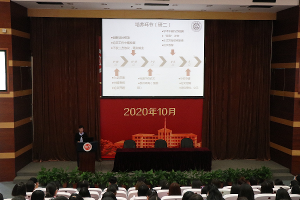 随后,会计学院副院长邵丽丽用时间轴的方式向研究生展示了审计硕士培养的全过程及具体环节,另就研究生导师双向选择做了具体介绍,对该项工作过程中的注意事项进行了强调。之后,研究生导师何芹从培养方向、学分要求及课程设置、培养方式、学位论文、学位授予方面对2020级研究生培养方案做了详细解读。紧接着,研究生辅导员周升铭对研究生在校期间的评奖评优奖助体系进行了详细说明。