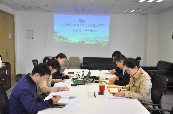 11月10日,会计学院党委理论学习中心组召开专题学习会,学习党的十九届五中全会精神。会计学院党委书记赵立辉主持会议,理论学习组成员参加学习。