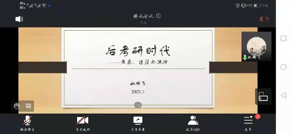 2021年1月6日,会计学院通过腾讯会议成功举办“后考研时代——焦虑、迷茫与抉择”求职规划经验交流分享会。本次分享会为会计学院“职业指导训练营”系列活动之一。会计学院2021届全体辅导员和全院282名在校生参与了本次活动。